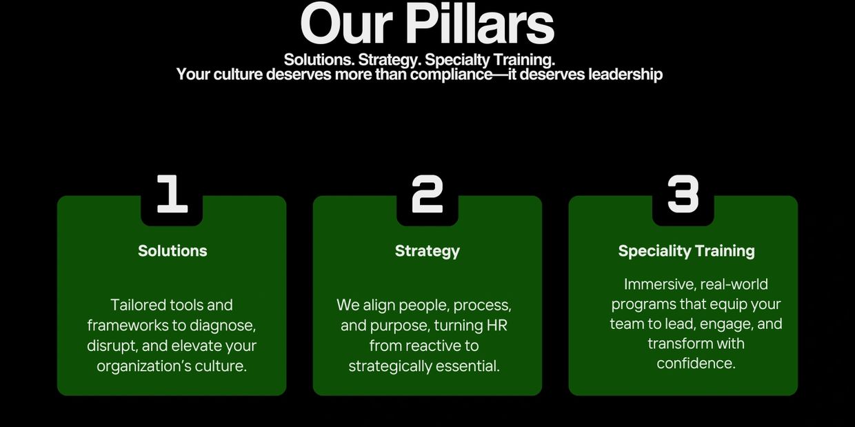 We’re not just consultants—we’re Culture Catalysts and Impact Architects on a mission to reshape the way organizations operate and thrive.